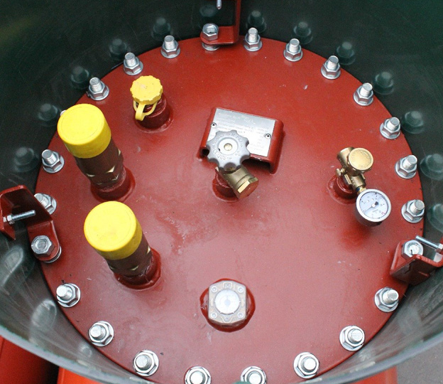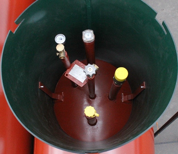 Газгольдер имеет широкую горловину, высотой 50-80 см, на крышке расположена арматура.